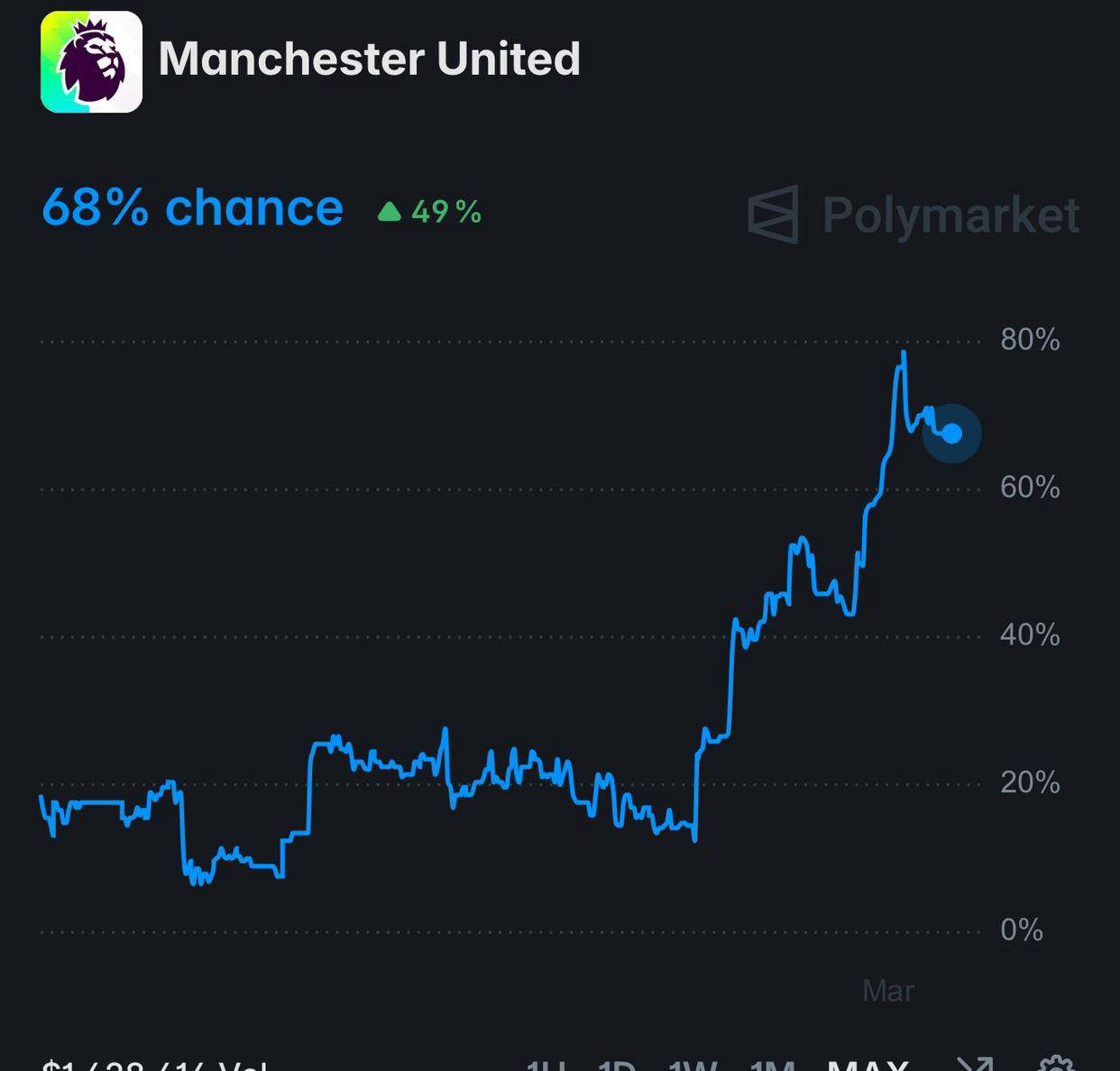 根据最新一项权威分析显示,在切尔西周六主场以0-1不敌纽卡斯尔联之后,曼联本赛季冲击英超前四席位的可能性显著提升,目前已达68%,几乎接近七成。这也意味着红魔重新夺回下赛季欧冠资格的希望非常大。作为英超前四球队必定获得欧洲冠军联赛参赛权,第五名尽管存在不确定因素,但同样极有机会获得欧冠资格。
